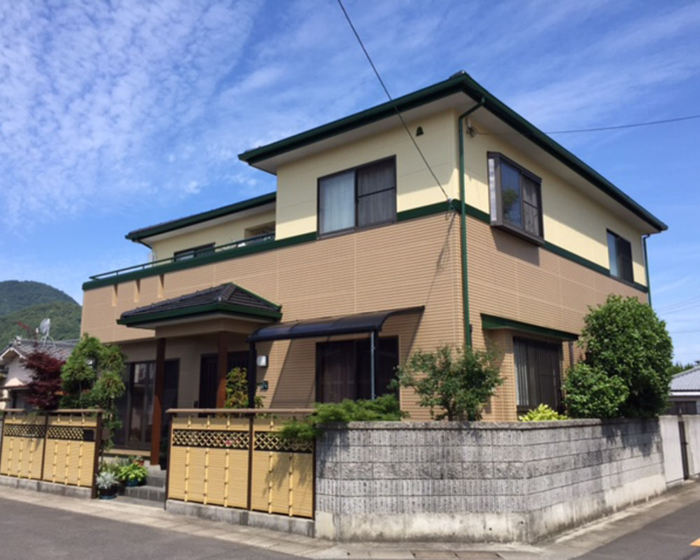 外壁既存塗装面の劣化によるチョーキングが発生し、退色も進行しており塗替えが必要な状況でした。