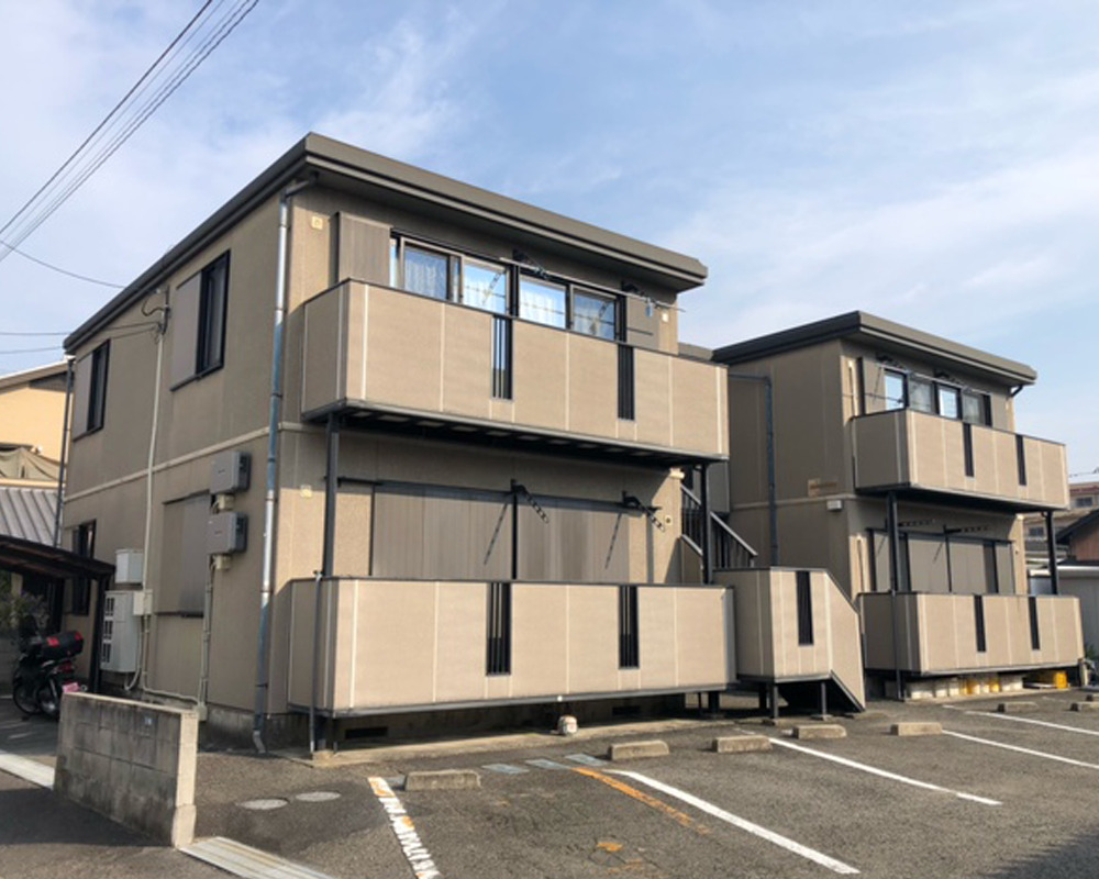 仕上は、ベランダ外を色変えすることでイメージが変わり、まとまりのある外観へと変わりました。